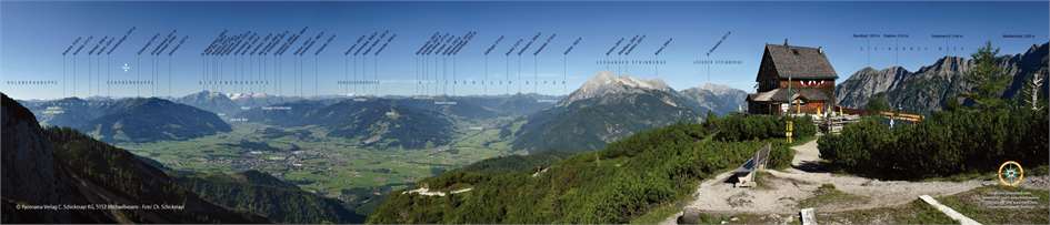 250°-Rundblick von der Peter Wiechenthaler Hütte oberhalb von Saalfelden am Fuße des Persailhorn. Foto: C. Schickmayr