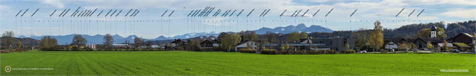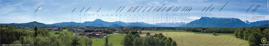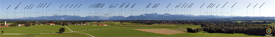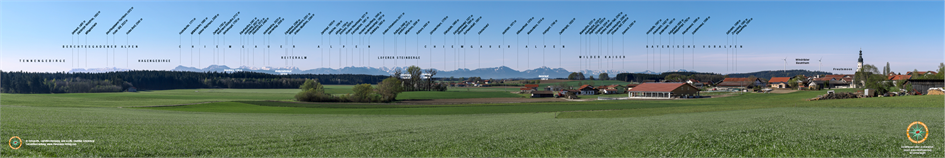 180°-Rundblick auf die Chiemgauer Alpen und das Bayerische Alpenvorland, aufgnommen vom Kloster Baumburg in Altenmarkt an der Alz. Foto: C. Schickmayr