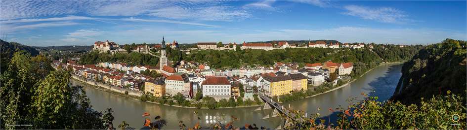 180°-Panorama über Burghausen, aufgenommen von der Aussichtskanzel auf österr. Seite im Herbst 2018. Foto: C. Schickmayr
