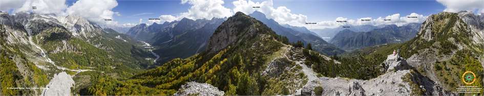 360°-Panorama vom Valbona Pass auf die Nationalparks Valbona und Theth. Foto: C. Schickmayr