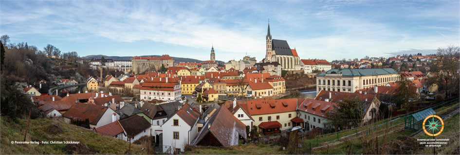 180°-Blick auf die Altstadt von Krumau an der Moldau. Foto: C. Schickmayr
