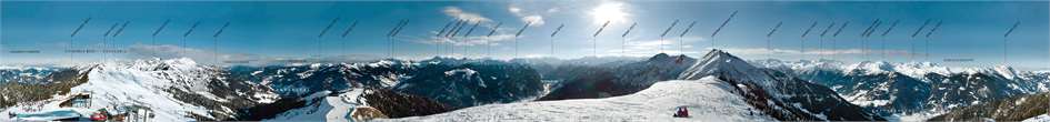 360°-Winterpanorama vom Kreuzkogel im Skigebiet Großarl-Dorfgastein. Foto: C. Schickmayr