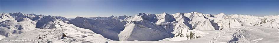180°-Panorama, aufgenommen von der Terrasse der Schlossalm-Bergstation. Foto: C. Schickmayr