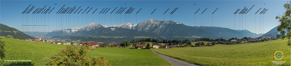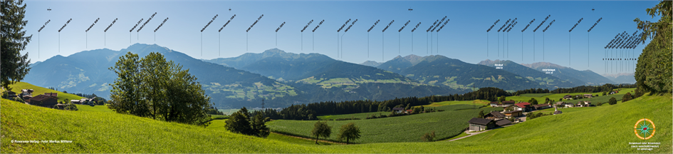 180°-Panorama von Vomperberg über Schwaz in Tirol auf die Tuxer Alpen. Foto: Markus Mitterer