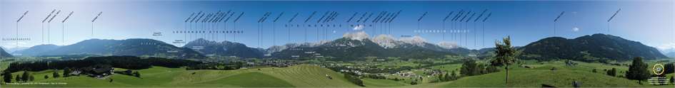 ca. 180°-Panorama von Madreit auf Leogang und die Leoganger Steinberge. Foto: C. Schickmayr