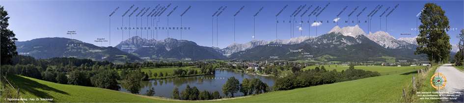 180°-Panorama von Saalfelden mit Ritzensee und Steinernem Meer. Foto: C. SchickmayrFotoposter-Sonderformat: 1430 x 400 mm!