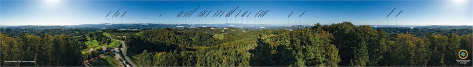 360°-Panorama, aufgenommen von der Kreuzberg-Warte in Eichberg-Trautenburg, Südsteiermark