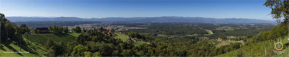 180°Panoramablick von Sausal nahe Großklein in die Weststeiermark mit der Koralpe, Grenze zu Kärnten. Foto: Ch. Schickmayr